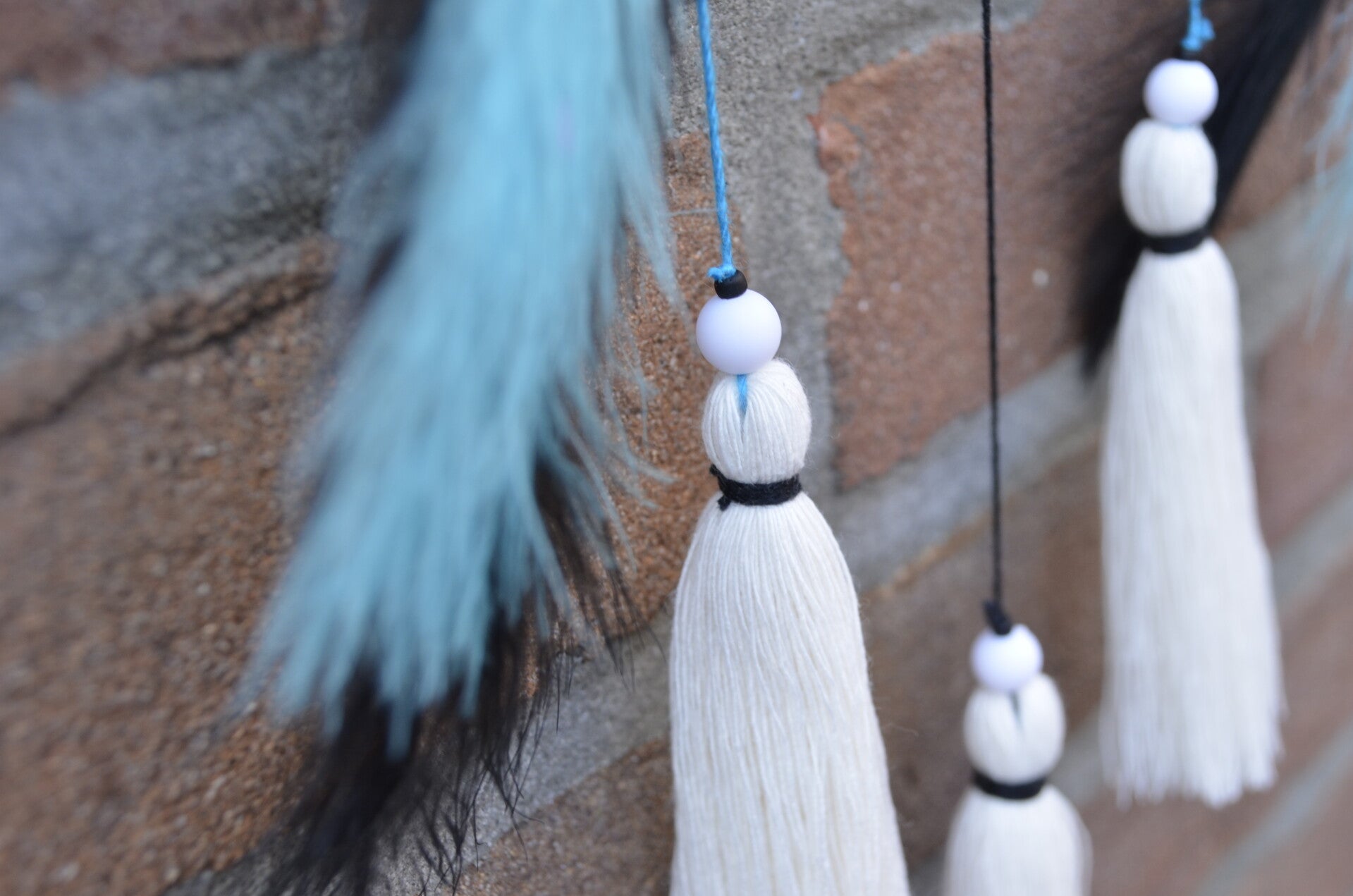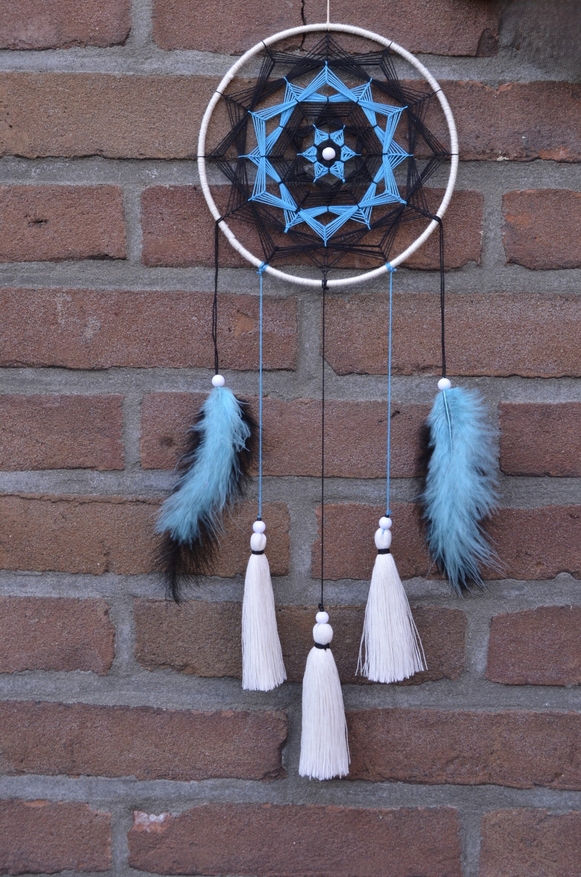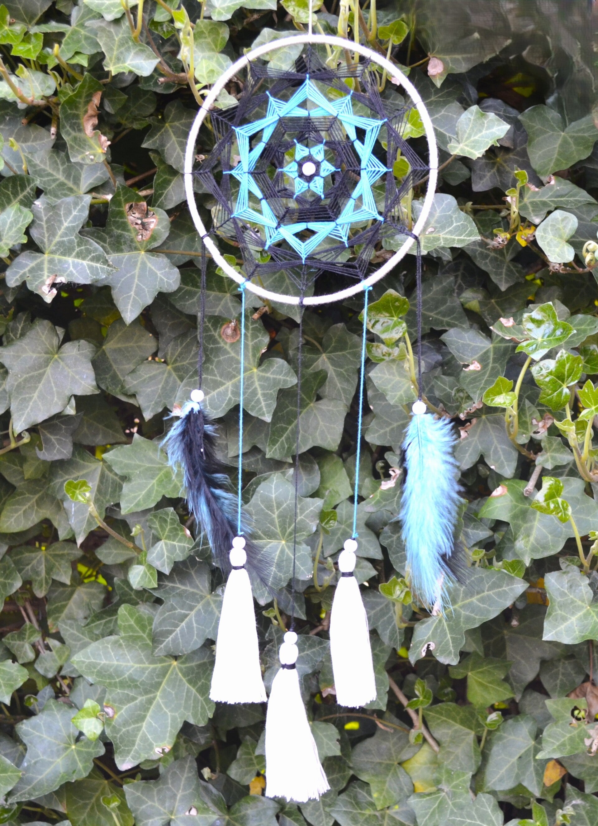 Handmade with love, this unique dreamcatcher blends cool blue tones with soft textures to bring peaceful energy to your space. 💙